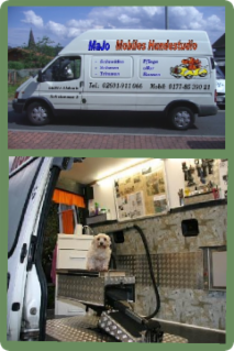 seinem zu Hause im Fahrzeug frisiert.Wir sind für Sie als mobiler Hundefriseur zu jeder Jahreszeit